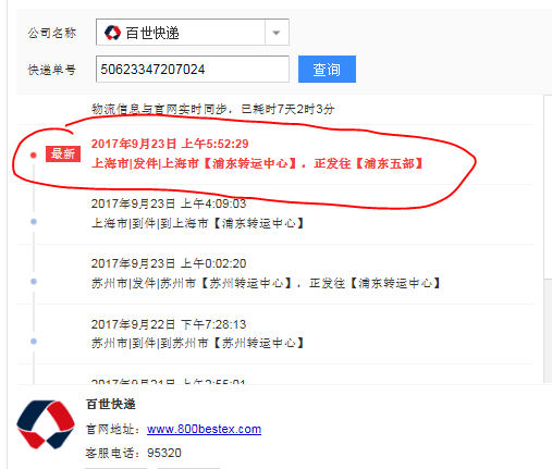 快遞到達浦東5部之后沒有派件,是否有更新進度? 快遞單號:50623347207024